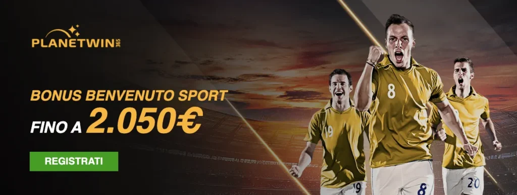 | Planetwin365 bonus sport | Fino a 2050€ sport | Rollover | x6 |